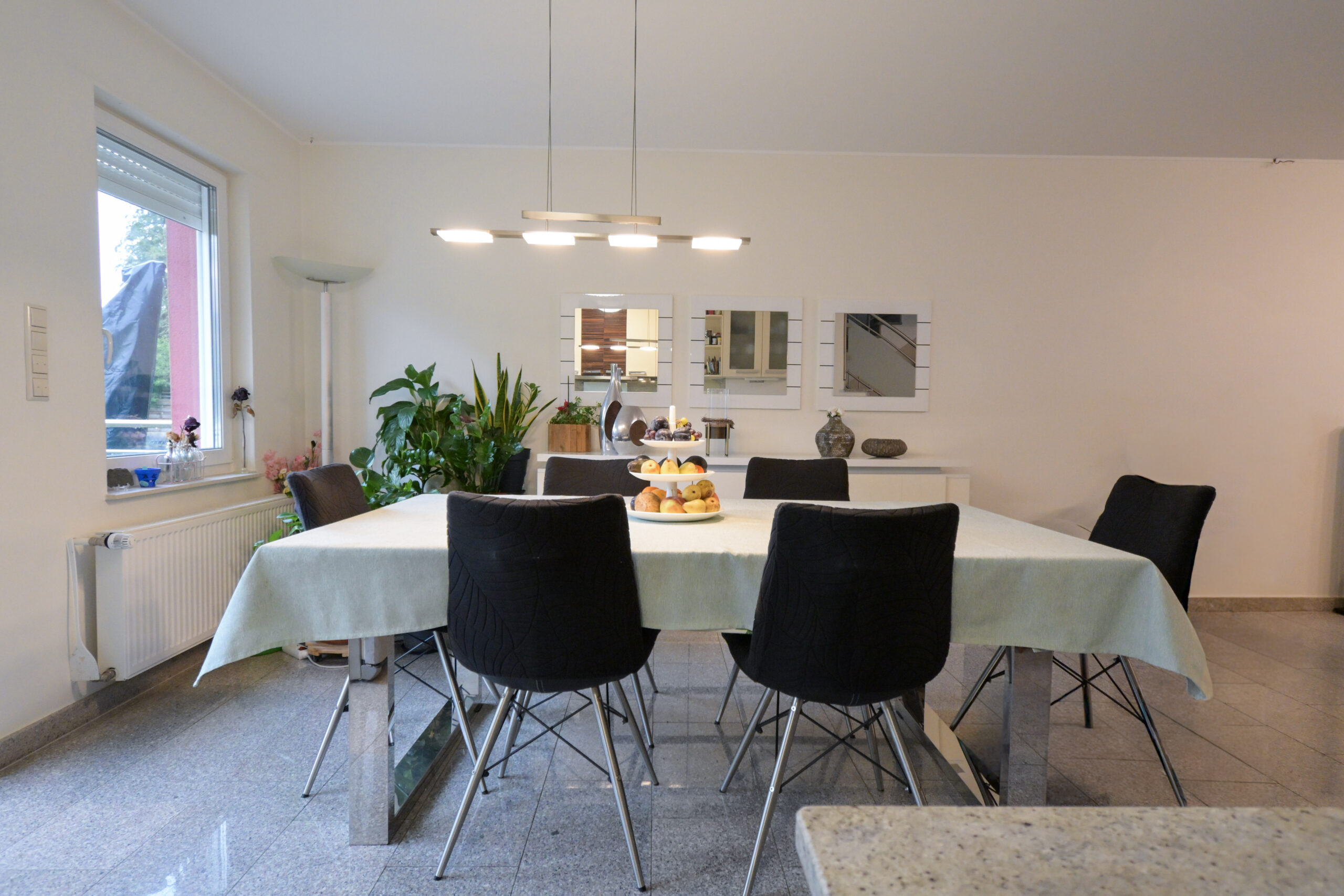 Le rez-de-chaussée se compose d’un spacieux hall d’entrée qui donne accès sur un espace de vie d’un living lumineux d’une toilette séparée, d’une cuisine ouverte sur la salle à manger qui donne accès sur un magnifique terrasse et jardin, complète idéalement ce niveau. Au sous-sol la buanderie et d’un espace débarras ainsi que d’un grand garage pour 2 voitures donnant accès au local technique.